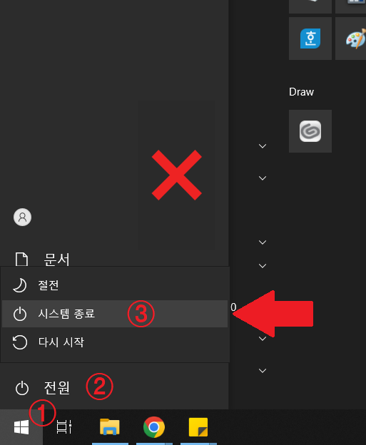 그냥 종료 누르면 완전히 종료되지 않는다구