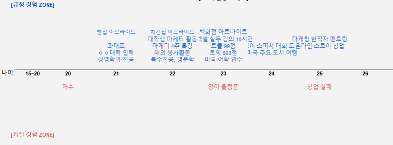 그동안 내가 해왔던 경험들을 인생 그래프에 나타내보는 것이다.