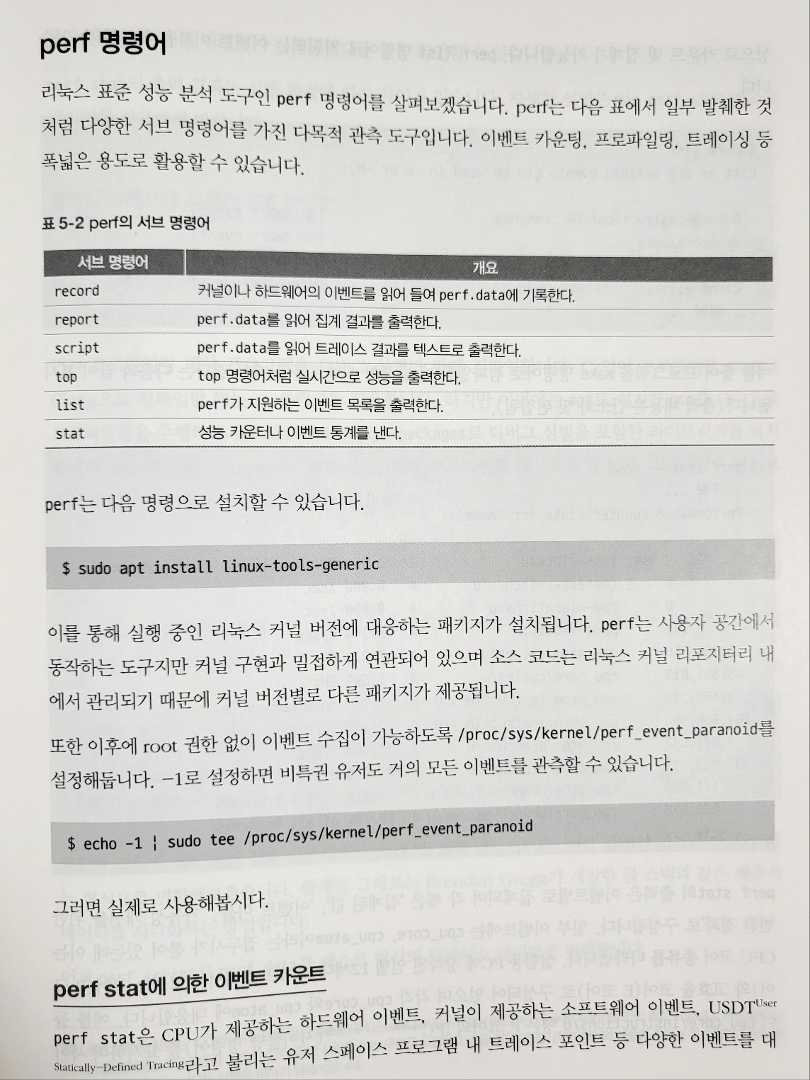 이벤트 카운트, 프로파일링, 트레이싱의 차이를 알 수 있고, perf로 직접 실습해볼 수도 있다.