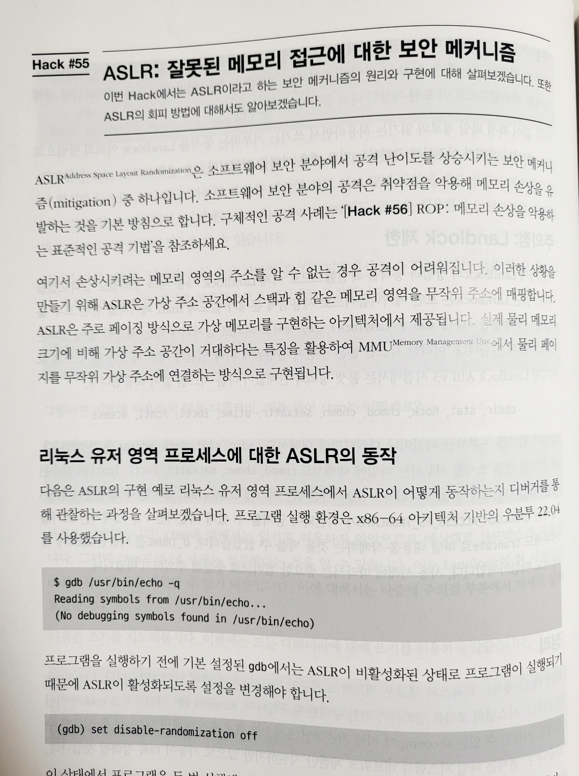 #55에서는 이 ASLR의 동작과 구현을 설명하면서도 ASLR을 회피해 공격하는 방법도 알려준다.